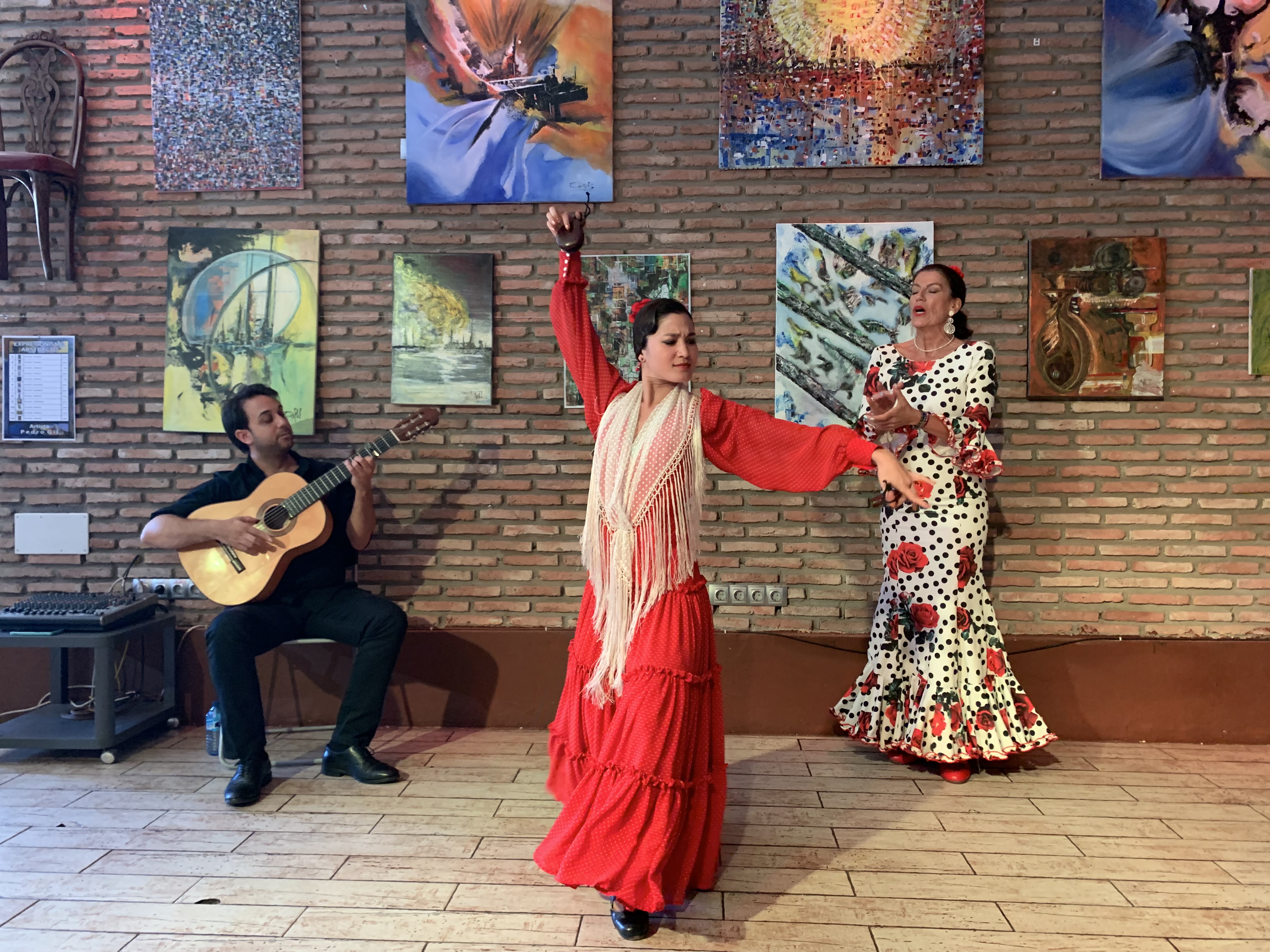 Un evento interactivo flamenco único con una anfitriona y profesora, uno o dos bailaores/as, un/a cantaor/a y un guitarrista