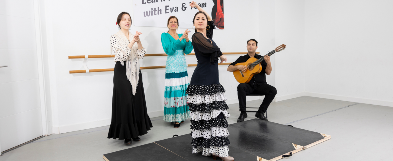 Tras una breve intro a orígenes y cultura flamenca, aprenderás a tocar las palmas flamencas a ritmo de toque, cante y baile en directo, así como a diferenciar los estilos de flamenco y a bailar una coreografía en un estilo del flamenco. Mucho más que un show flamenco...